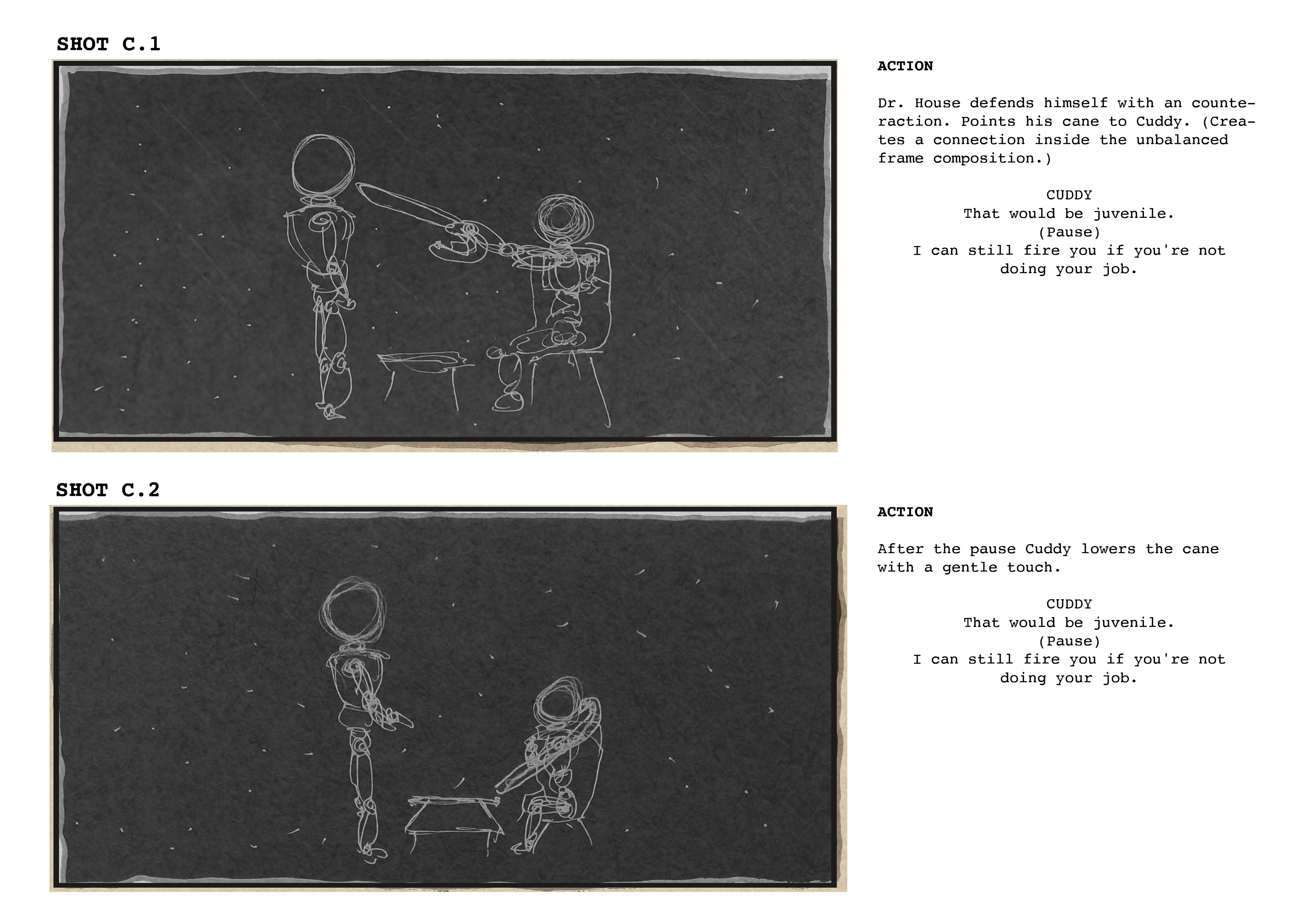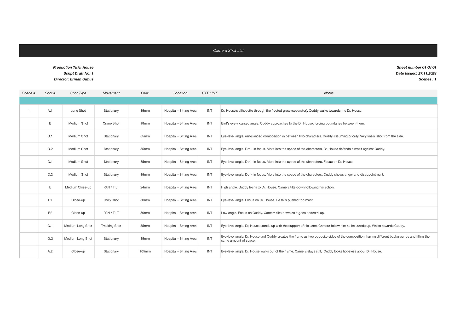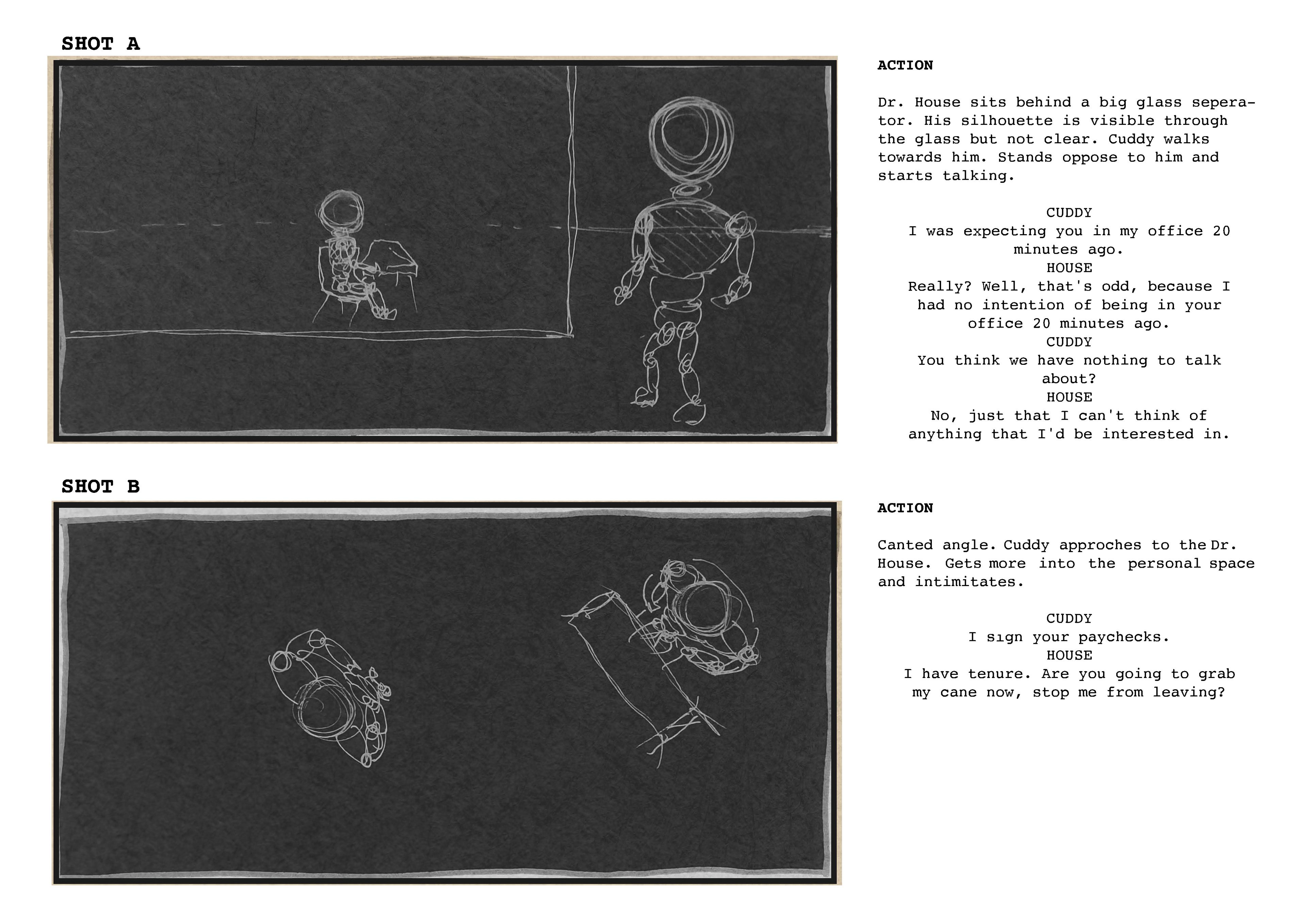 Practice on; prep every director should do before shoot including; moodboard, line marking, shot list, storyboard and blocking scheme.